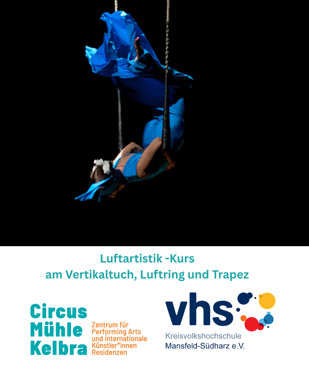 Ich gebe im Oktober und November einen wöchentlichen Luftartistik-kurse in der CircusMühle Kelbra in Kooperation mit der Kreisvolkshochschule Mansfeld-Südharz.
